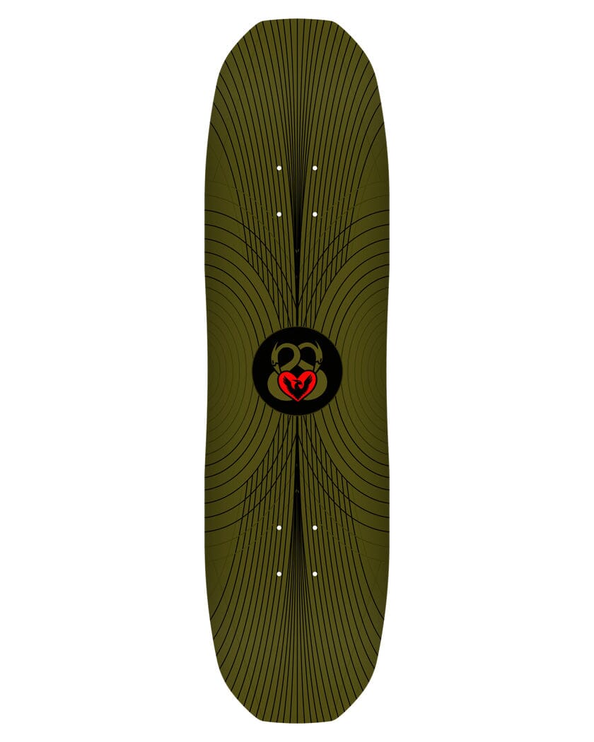 While the Vajra shape was a challenge to develop, this one came easily to Andy. Reminiscent of the original Heron shape but smaller and symmetrical, it measures 8.25" at the waist, just under 8.5" at the widest, and has a 14.25" wheelbase. The square edge and slightly curved nose and tail deliver solid, stable pop, while the K26 concave and inner cuts create a front-foot pocket that makes Tre Flips and Varial Heelflips easier to flick. With its streamlined shape, pop, and responsive feel, the Hydrant shape is solid gold.